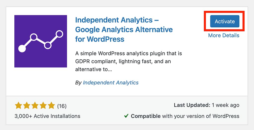 Since Independent Analytics is available on the WordPress repository, the easiest way to install it is via the Plugins menu in your admin dashboard.