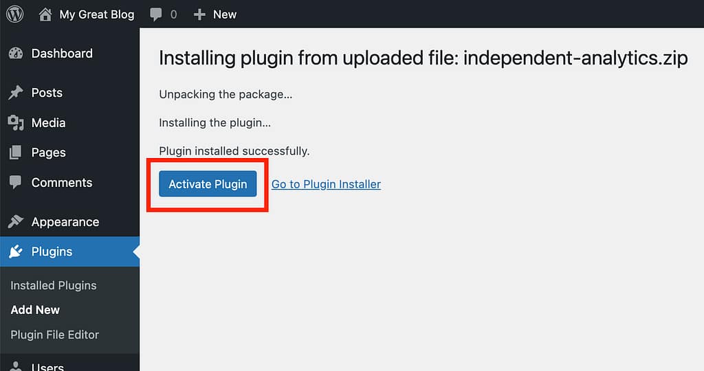 On the next screen, click the Activate Plugin button to activate it.